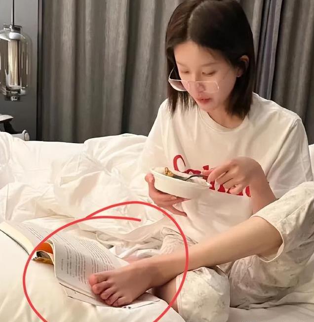 1月2日,赵露思在社交媒体上晒出一组“病后恢复”的照片:她坐在床上,手拿一盘锅包肉大快朵颐,脚下还翻着一本书——余华的《我胆小如鼠》。昨天还虚弱到连吞咽都困难,今天就能大口吃锅包肉?