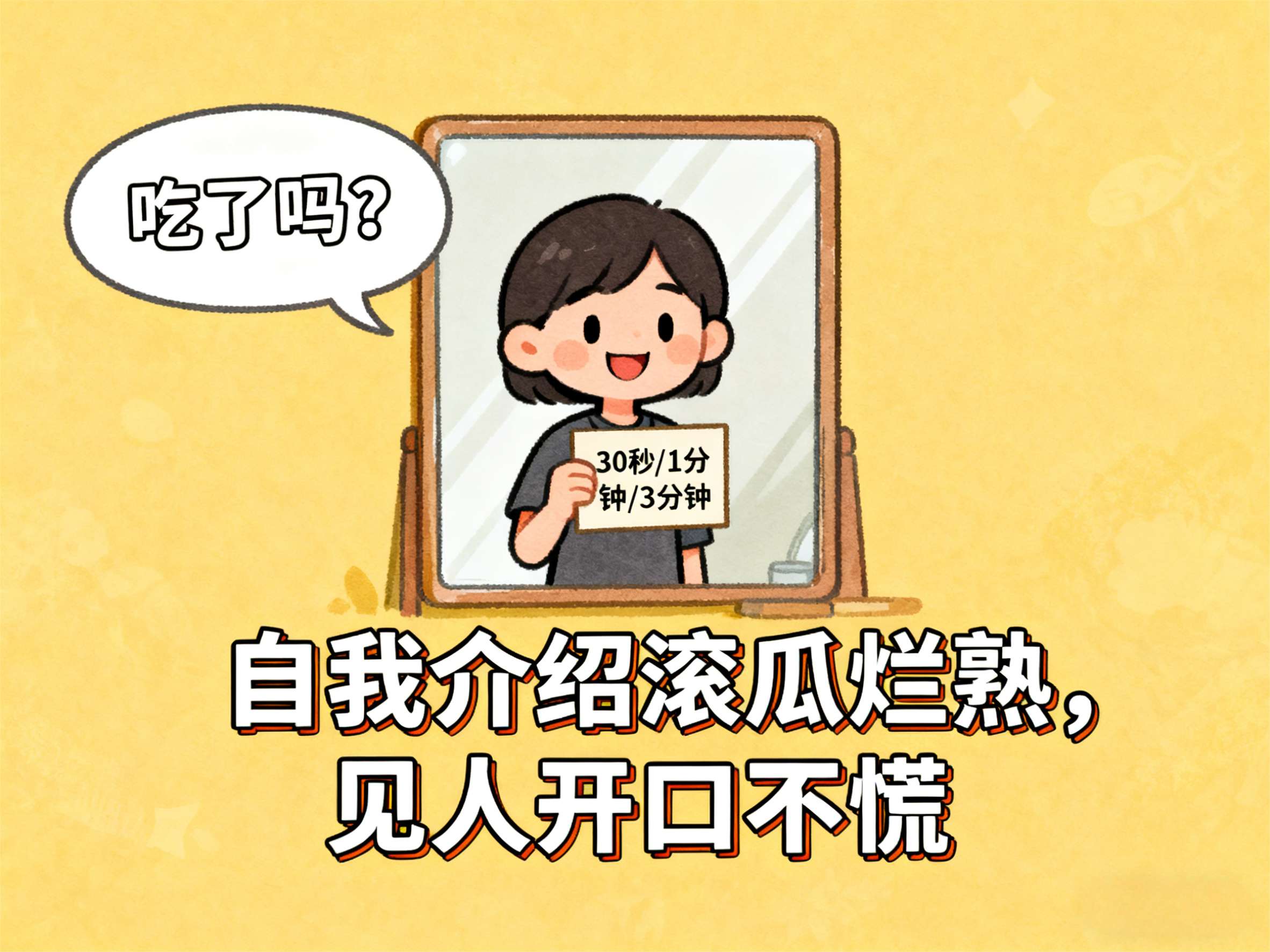 提前准备好3个版本的自我介绍:30秒短版(电梯偶遇用)、1分钟普通版(初见客户用)、3分钟详细版(面试用)。背到像说“吃了吗”一样自然,见面再也不怕冷场了。