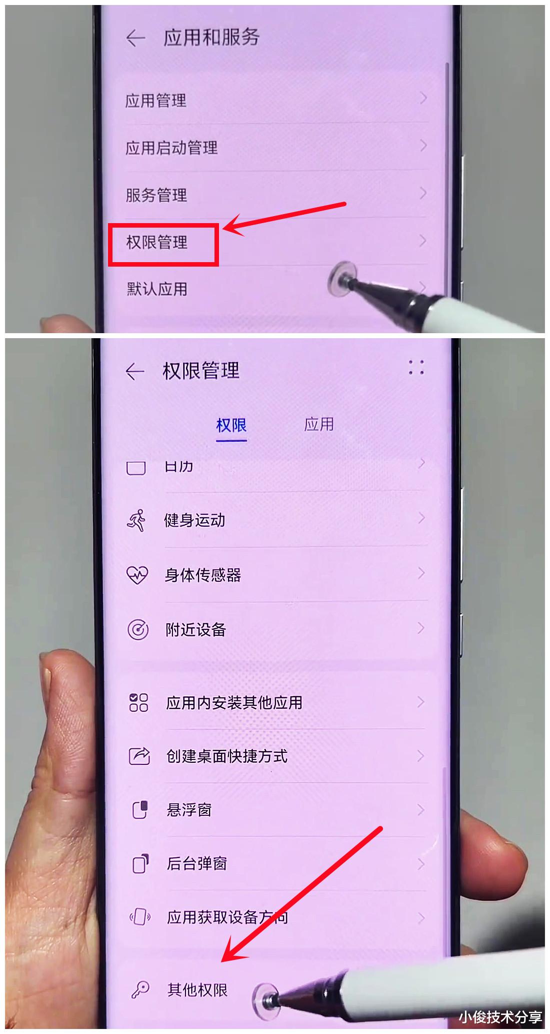 打开应用和服务之后,在这边有一个权限管理,咱们点进去,然后继续往下找,找一个叫做其他权限的设置。