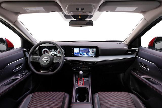 新一代劲客内饰简洁立体,中控台为悬浮式双联屏,配红色缝线及碳纤维纹理装饰,现代且运动。虽迎合年轻消费者,提升质感,但细节处理较高端车款略显简单。