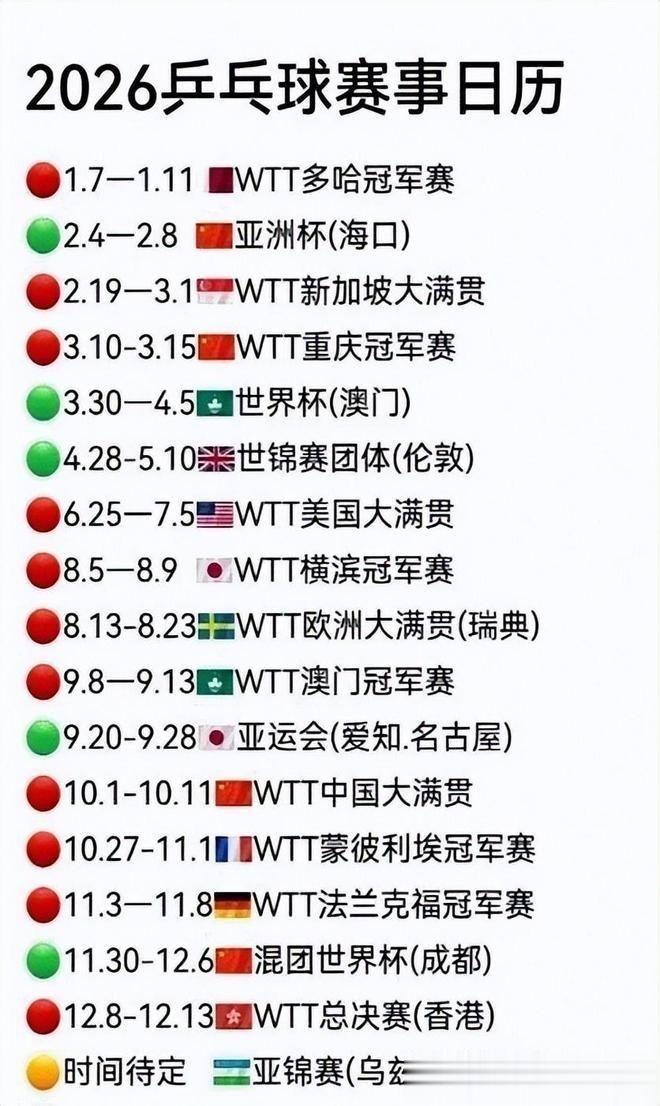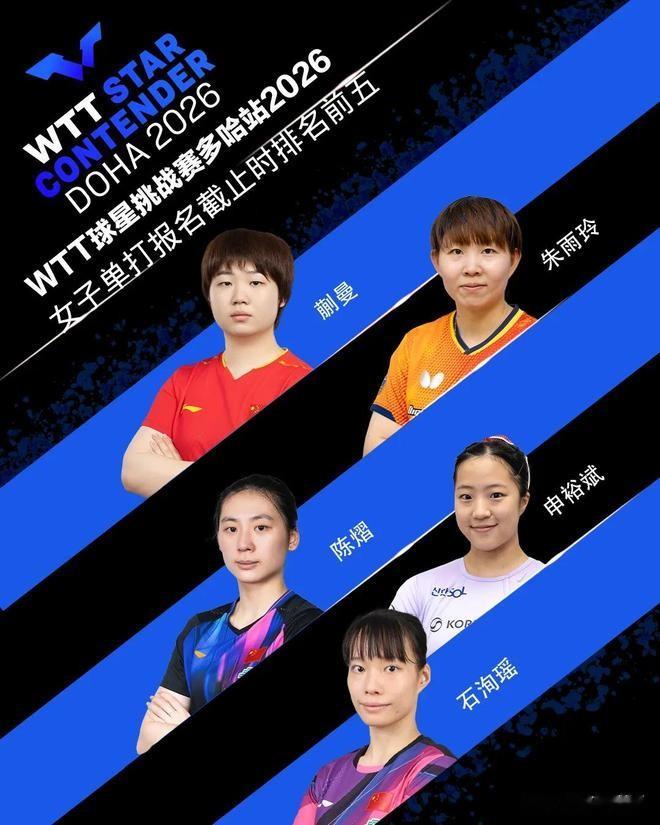 2026赛季WTT多哈球星挑战赛首批参赛名单公布,国乒派出10男10女参加单打,林诗栋和蒯曼分别成为男、女单头号种子。赛事将于1月13日至18日举行,为新赛季第二站比赛。男单方面,林诗栋、梁靖崑、向鹏、陈垣宇继续参赛,并与周启豪、陈俊菘、黄友政共7人直接晋级正赛;薛飞、徐瑛彬、袁励岑需通过资格赛。