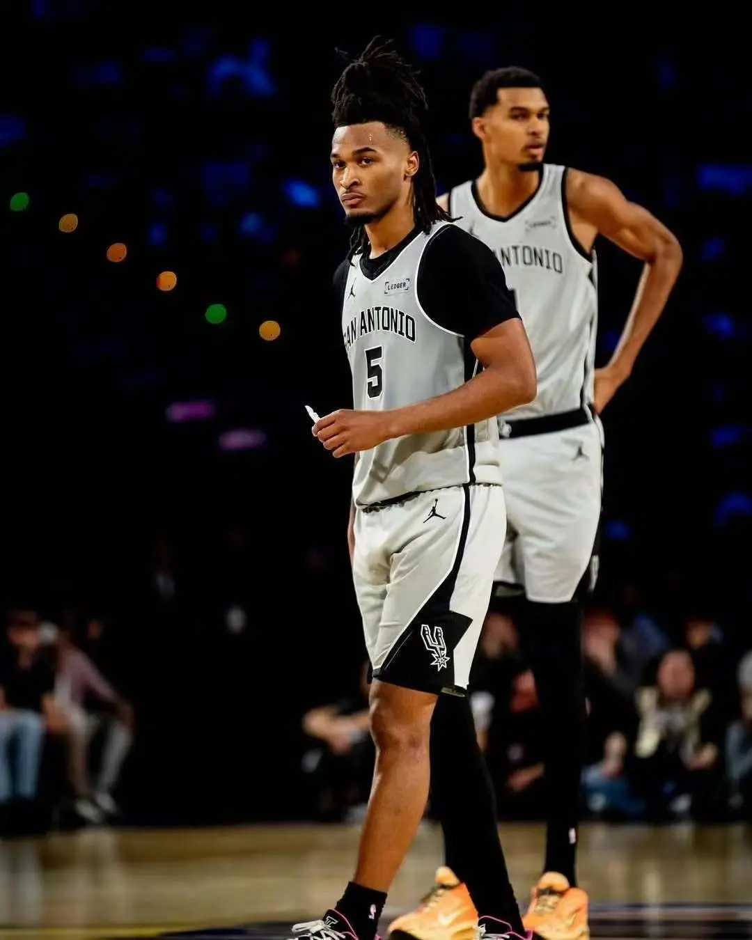 文班亚马这场打得还是替补,但效率超高。15次投篮进了10个,还有两个盖帽。他和队友配合很顺,卡斯尔、瓦塞尔上半场各拿十多分。马刺全队没人打超过30分钟,看来为了后面比赛留力。