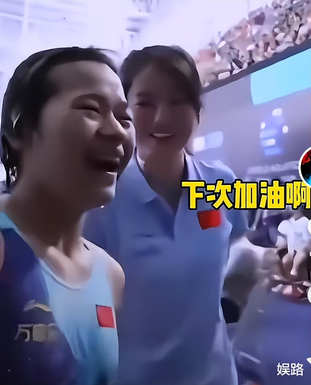一旁目睹这一幕的全红婵,先是有些尴尬的笑了笑,随后手足无措,像是个做错事的孩子。