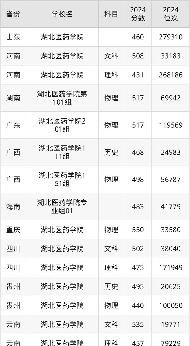 湖北医药学院药护学院2024年在河南省分专业录取分数