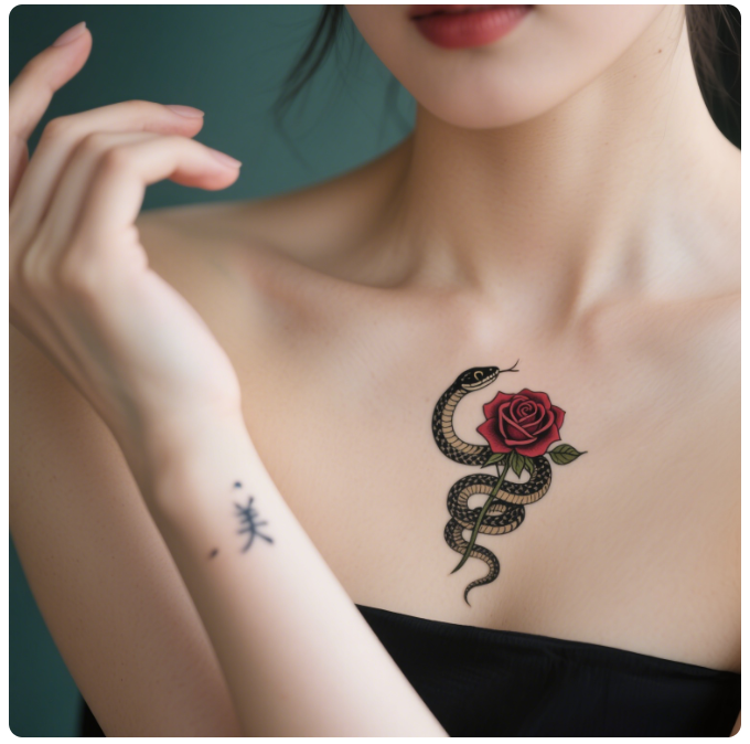 "那麻烦您代签。"她递来表格,袖口上翻的瞬间,我瞥见她腕内侧有个小小的纹身——和美芳锁骨下那个几乎一模一样:缠绕的蛇与玫瑰。