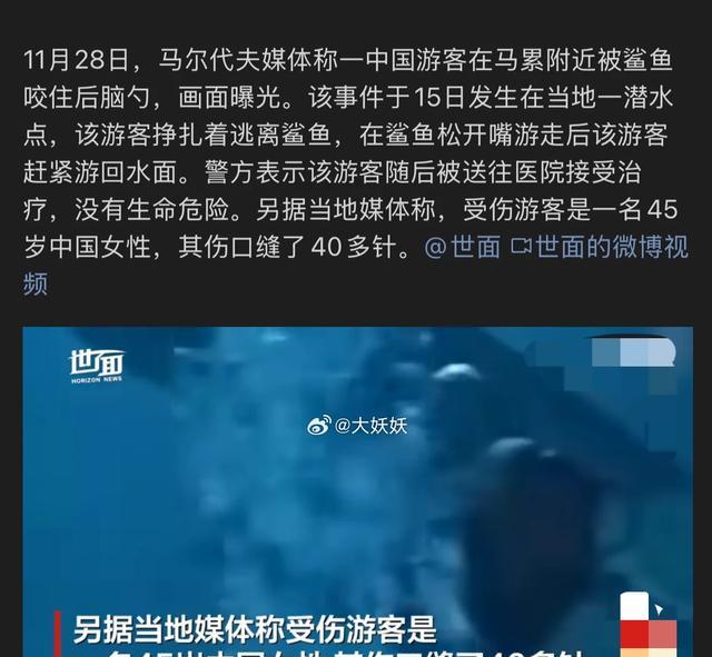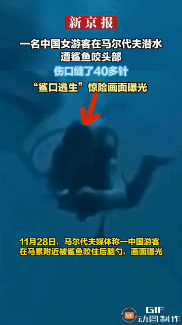 缝了40多针?吓人不?近日网传一中国女游客在马尔代夫潜水遭遇鲨鱼咬住头部?结果缝了40多针!