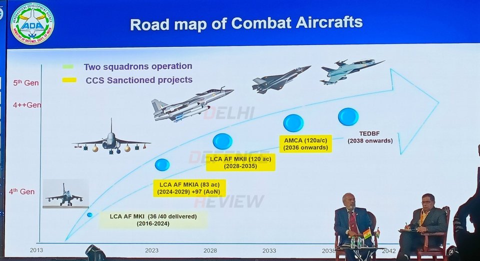 此外,印度媒体似乎误将AMCA五代机项目负责人在2025年印度航展上所声称的“AMCA五代机将于2028年投入使用”的言论当作了事实。然而,根据印度国防研究与发展组织(DRDO)最新发布的PPT路线图显示,AMCA五代机的实际量产计划预计将在2036年左右启动,前提是未来几年一切进展顺利。 ▲印度战斗机发展历程概览