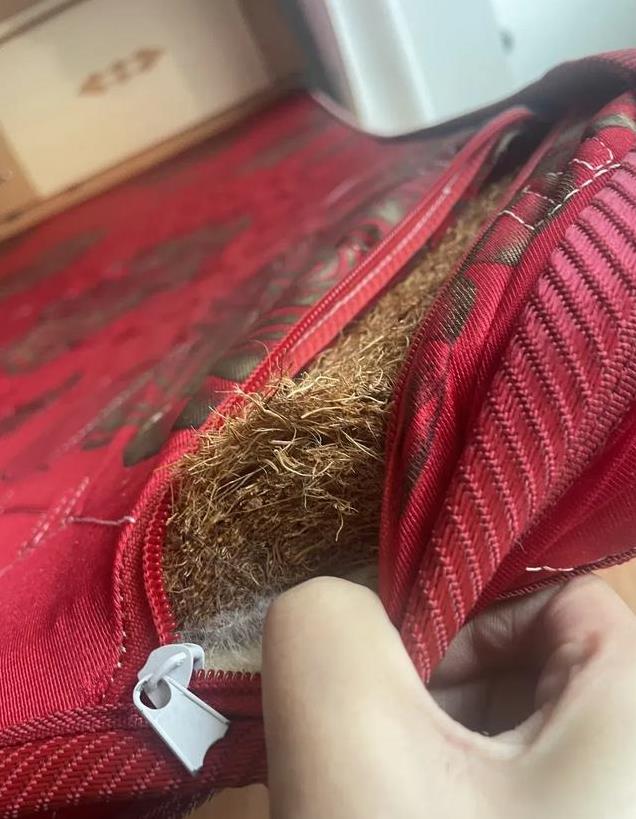 如果你家用的是椰棕床垫,大家看一看里面是不是已经不能分层,粘合在一起了,这种床垫多半都是胶水棕,赶紧扔掉吧。