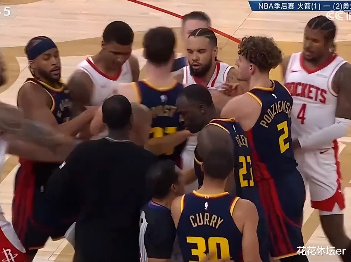 北京时间4月29日上午10点,NBA季后赛焦点战,勇士火箭的G4打响。第二节,勇士的一次进攻,库里持球寻求挡拆配合,格林挡拆撞倒了阿门,狄龙则是阻挡撞倒了持球的库里,两次身体冲撞之后,勇士火箭爆发冲突!最终,裁判组给出判罚,勇士两个技犯,火箭一个技犯,直接导致冲突发生的狄龙得逞了,判罚对于火箭队有利。随后不久,格林和伊森的身体冲撞再次爆发冲突。短时间内,3次身体冲撞,勇士火箭连续爆发2次冲突!