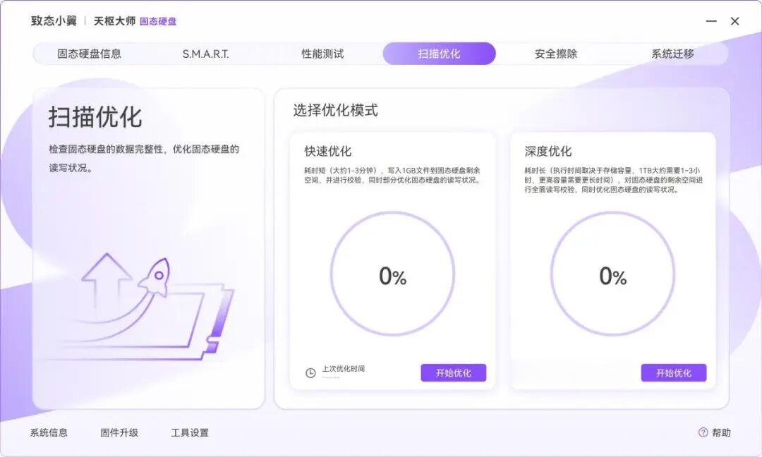 如果既想保留盘中数据,又想对固态硬盘的性能进行优化,用户可以使用扫描优化功能。