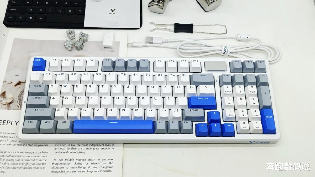 本次评测聚焦雷柏V700-DIY-98机械键盘(白灰蓝配色)与VT9 MAX二代电竞鼠标(魅影紫配色),前者主打客制化与全场景适配,后者深耕轻量化电竞性能,两款产品兼顾颜值与实用性,是否能满足办公玩家与硬核电竞党的双重需求?接下来我们逐一拆解。