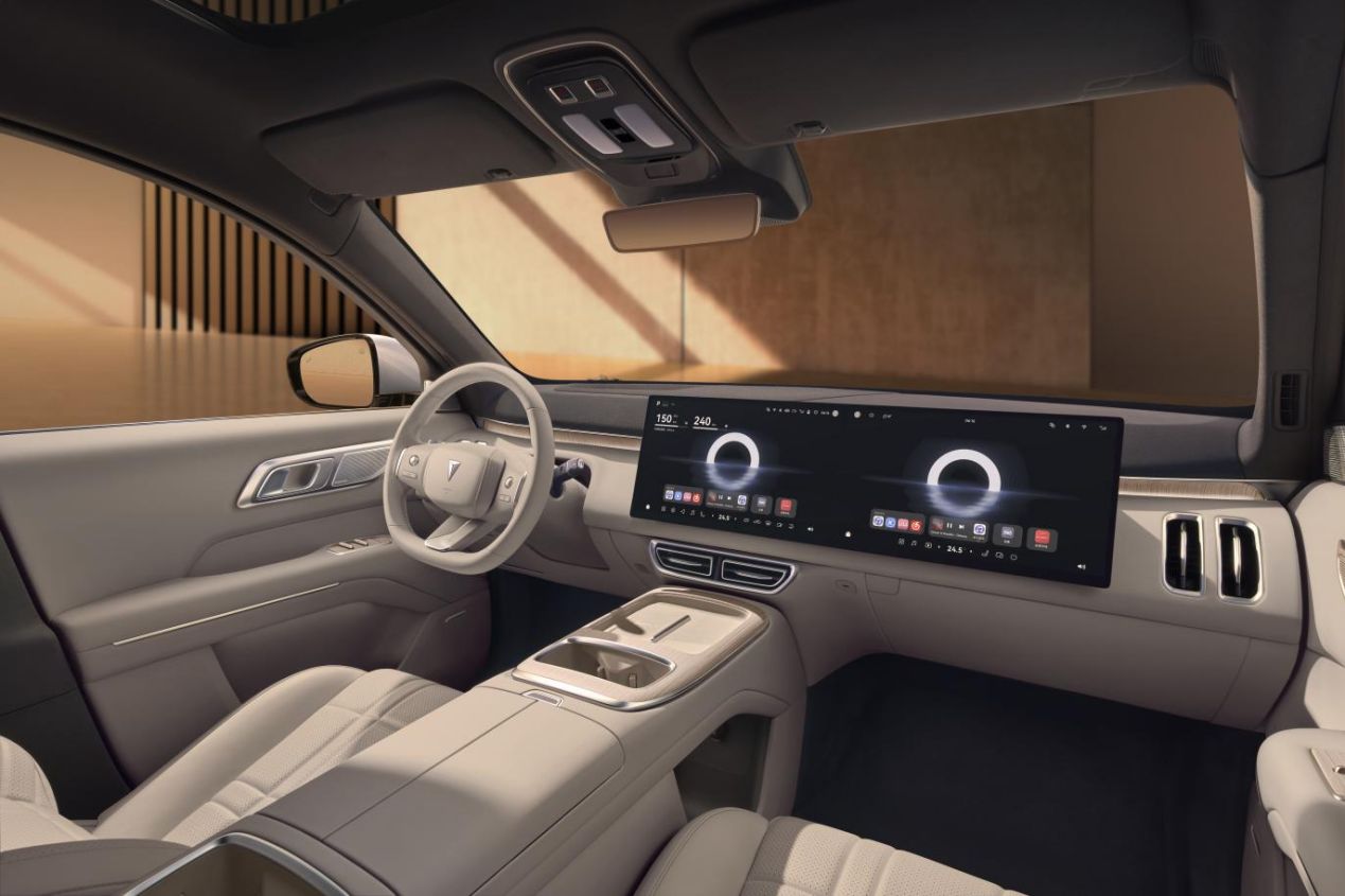 在智能化层面,深蓝 S09 搭载鸿蒙座舱 5,配备 15.6 英寸中控大屏、15.6 英寸副驾娱乐屏以及 21.4 英寸后排娱乐屏,实现多屏互动,影音娱乐内容可在手机和车机屏幕间无缝流转,为车内成员提供丰富的娱乐体验。智驾辅助方面,深蓝 S09 配备华为乾崑智驾 ADS3.3,由 1 颗激光雷达、11 颗高清摄像头、3 颗毫米波雷达、12 个超声波雷达等 27 个智能传感器构成硬件基础,支持城市和高速路况智驾领航辅助及华为全向防碰撞 CAS3.0,并将于 2025 年下半年通过 OTA 升级到 HUAWEI ADS 4,为用户带来更智能、更安全的驾驶体验。
