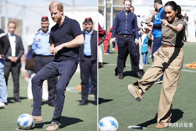 梅根换上更低调的棕色裤装套装,与一群年轻女孩一起踢足球。哈里射门被一名女球员扑出,梅根则罚进点球。正当两人想小小 “炫耀” 时,工作人员问一个小女孩是否知道梅根是谁,小女孩却径直转身走开。梅根笑着说:“太可爱了,这么自信 —— 这正是你们教给她们的。”