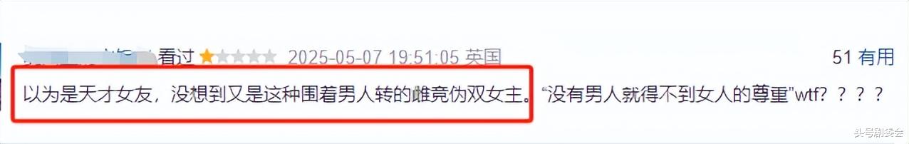“以为是天才女主,没想到又是这种围着男人转雌竞的伪双女主。”