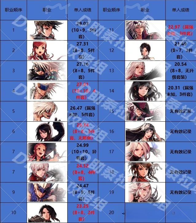 ps:因区服太多以及练习模式成绩可能没有及时记录,部分职业会有更高的伤害,以上成绩都有实际伤害截图数据,标红伤害为该职业还有很大的潜力