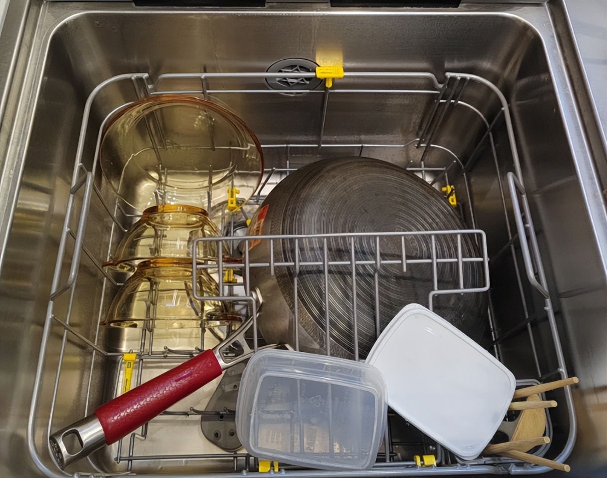 水槽洗碗机的容量有限,一家人用的餐具少,完全可以放进去清洁,