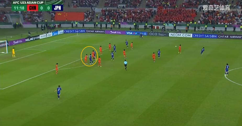 教练组安排的既定战术让你“大胆往前冲,压迫对方防线后撤”,不是让你只知道往前冲然后一直待在前面。日本U23双后腰大关友翔和小仓幸成没有一直拖在他们的三中卫前面,也没有一直卡在中路。