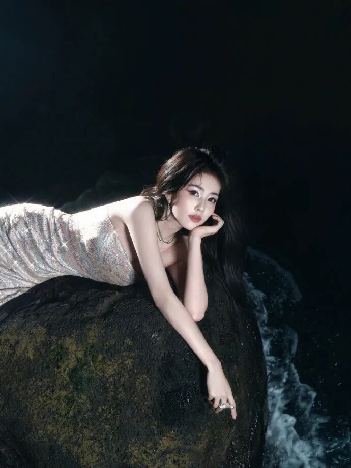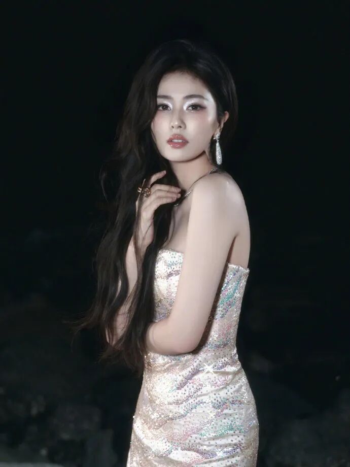 :DeBeers 珠宝的冷光不是 “抢裙的戏”,反是 “钻的奢衬着骨的柔”;夜色海边的暖灯不是 “背景板”,是 “夜的静裹着骨的媚”,让 “高定” 不是柜里的冷贵物,是 “柔骨撑起来的人间妩媚装”。金句:“高定夜宴的高级从不是彩钻的堆奢,是柔廓贴骨的媚,夜光衬魂的灵 —— 白鹿这波,是把柔骨穿成了高定的人间妩媚标签”。