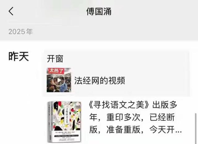 儿子公开傅国涌的朋友圈,看了直让人泪目。在去世前傅国涌最后做的一件事依然跟历史文学有关,多么兢兢业业的一位历史学者啊,看到停在“昨天”两个字上朋友圈,真令人痛心!