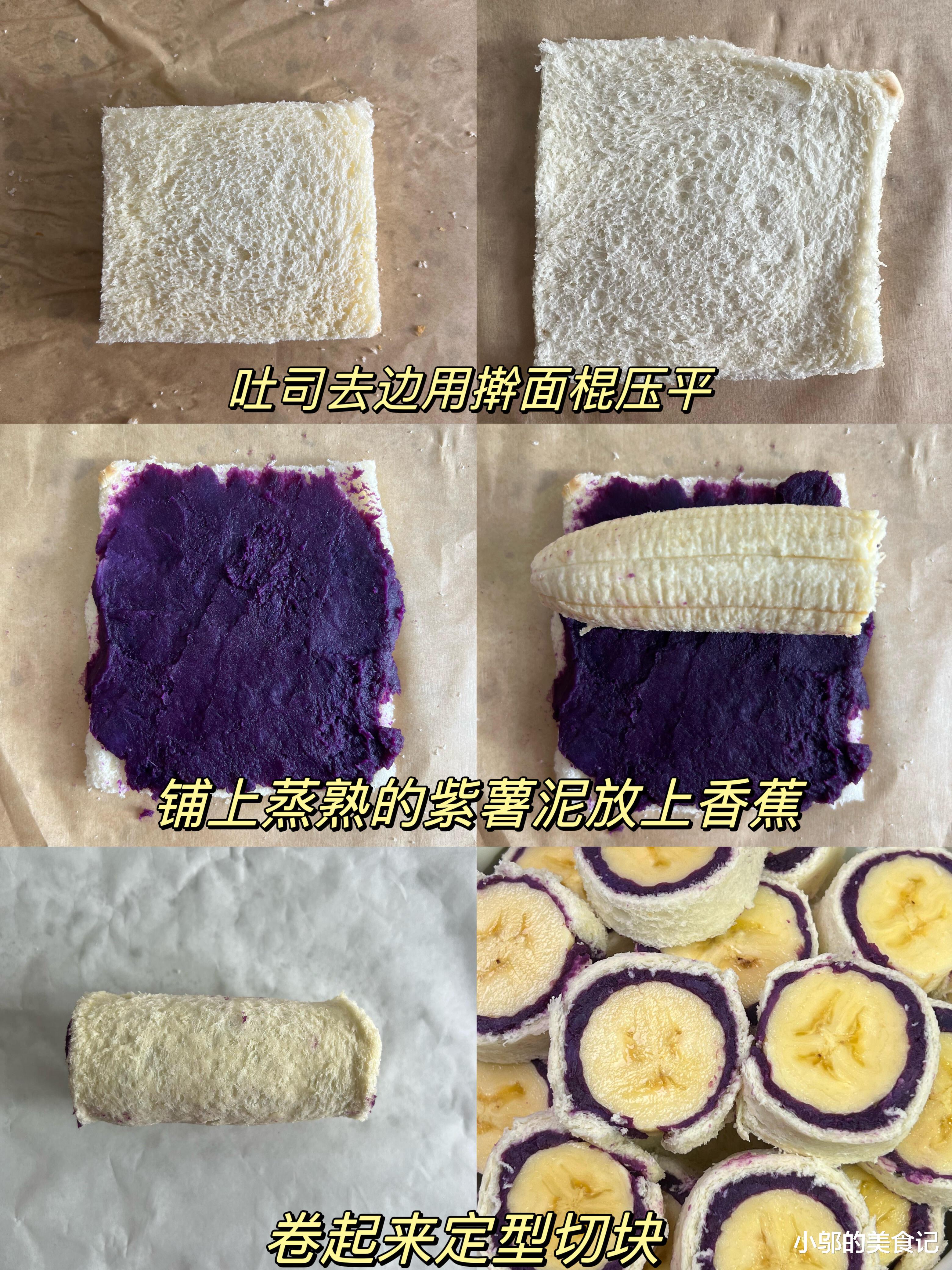 减脂期的快乐小甜品:紫薯香蕉吐司卷。减脂期总想吃点甜口的又怕有负担?挖到的这款紫薯香蕉吐司卷,简直是减脂姐妹的福音,低卡又饱腹,关键是做法还超简单,厨房小白也能一次成功。