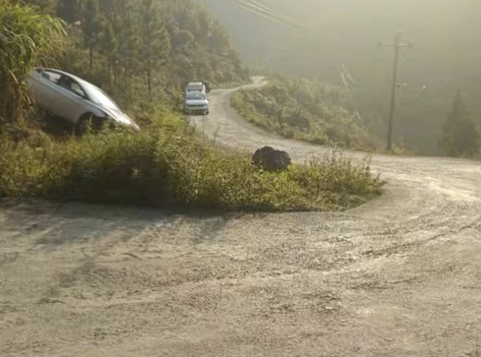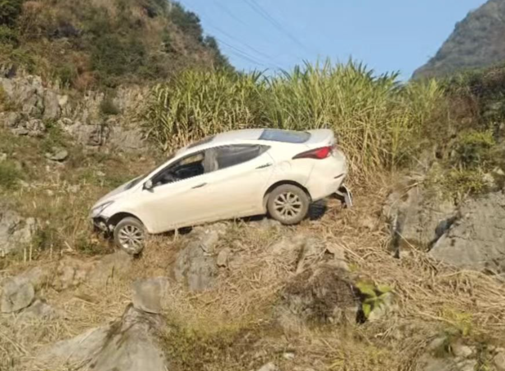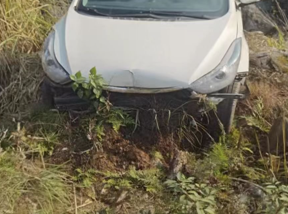 接警后,民警迅速赶往现场。抵达现场后,民警发现一辆白色小型轿车掉落在路边沟里。