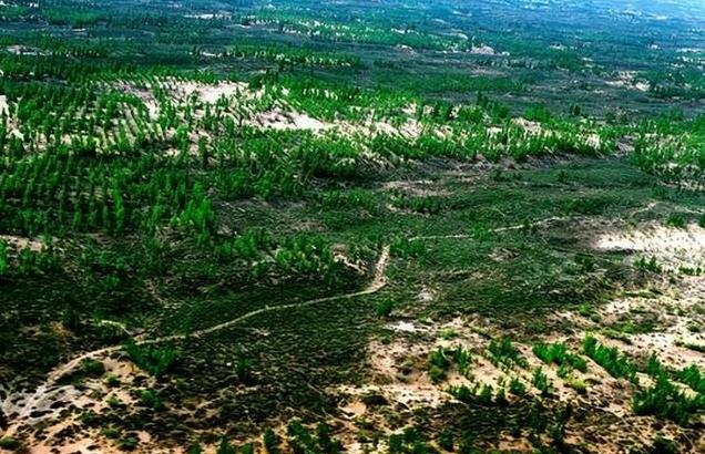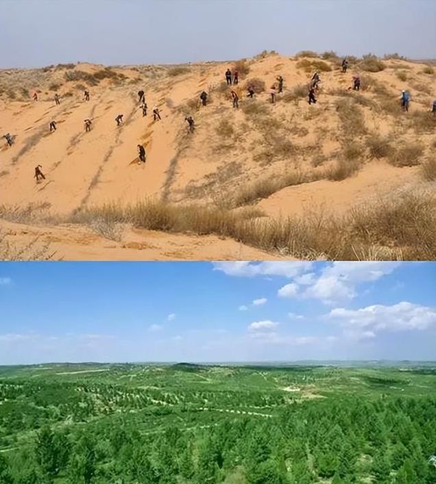 原本荒凉的毛乌素沙漠,已经有超过3.3万平方公里的地区重新覆盖上了绿色的植被。这六十年来,我们已经做到了让毛乌素沙漠近80%的沙化土地重新变为林地。