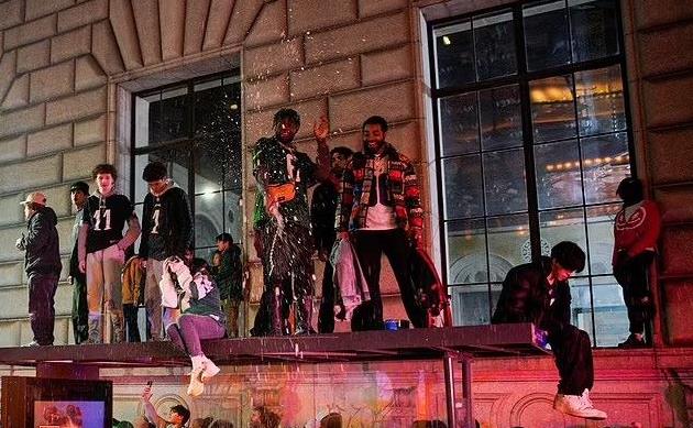 费城的夺冠狂欢一贯以狂热著称,2018年老鹰队首次赢得超级碗时,类似的场景便已经上演。但这一次的胜利,点燃了球迷更大的激情。面对赢下被广泛看好的酋长队、再次捧起文斯·隆巴迪奖杯的喜悦,整个城市彻底沸腾了。