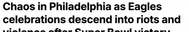 超级碗结束后,原本应该是庆祝的夜晚,却迅速演变成失控的混乱。费城老鹰队在超级碗第59届比赛中以40-22击败堪萨斯城酋长队,时隔六年再次夺得冠军。