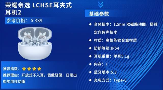 第八款:荣耀亲选LCHSE耳夹式耳机2参考价格:¥339