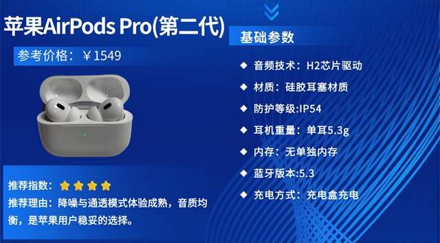 第六款:苹果AirPods Pro(第二代)参考价格:¥1549