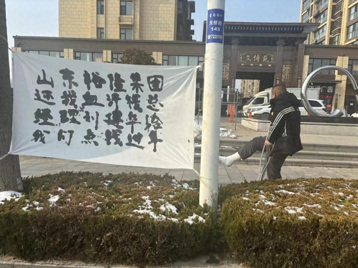 年关将至,在莒南县裕隆置业集团各个主要出口均被人拉上了横幅。横幅内容疑似赖账不还,债权人讨要无果采取的无奈手段。