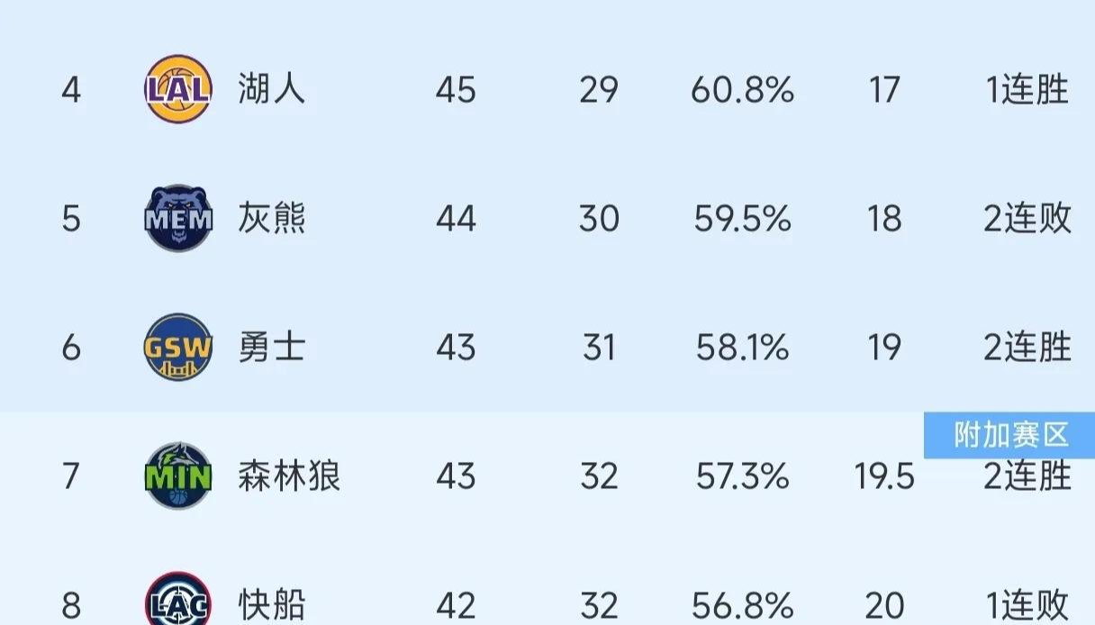 快船目前的排名,非常的尴尬,球队目前已经落后勇士与森林狼,这让球队在竞争前六的排名中,处于不利的位置,但对球队来讲,还有一个好消息,那就是球队后面的赛程,整体上比较简单,就看快船能不能抓住机会。