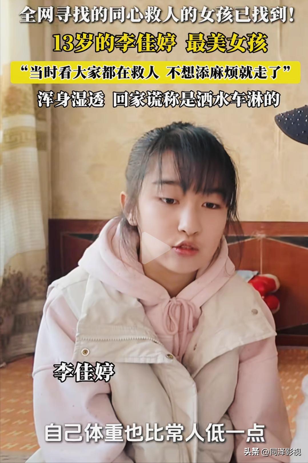 宁夏冰窟救童的女孩子找到了!女孩叫李佳婷,那场冰窟救援后,面对爸爸的质疑,13岁的她回家只说了句:“爸,洒水车溅的。” 对自己救人的事只字不提。