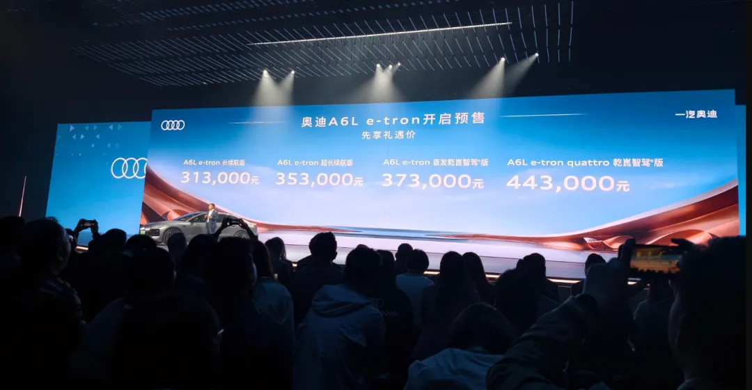 奥迪A6L e-tron定位纯电动中大型轿车,竞品将包括小米SU7、蔚来ET7、极氪001、享界S9纯电、阿维塔12等。从定价来看,奥迪A6L e-tron甚至比全新奥迪A6L还低,预计最早价格将在30万元出头,可以与国产中大型纯电轿车正面竞争。