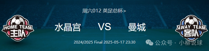 曼城在英超34轮积61分排名第4,对于曼城而言,此役是本赛季唯一可争夺的冠军锦标,他们急需夺冠以锁定下赛季欧冠资格。