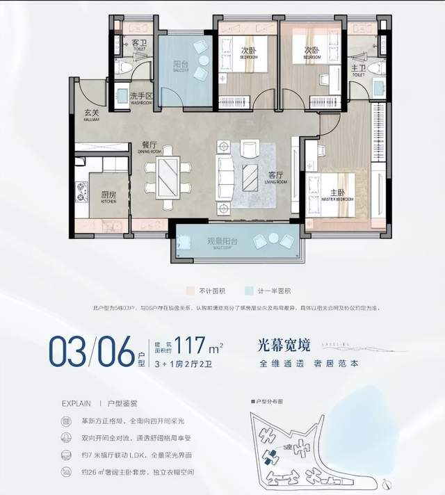 117平方米四室两卫:这个房型设计合理,空间布局灵活,适合大家庭居住。每个房间都能享受到充足的自然光线,南北通透的设计让居住环境更加舒适。