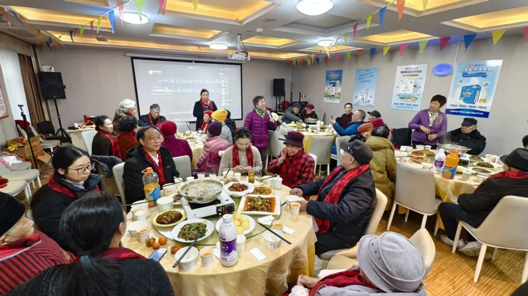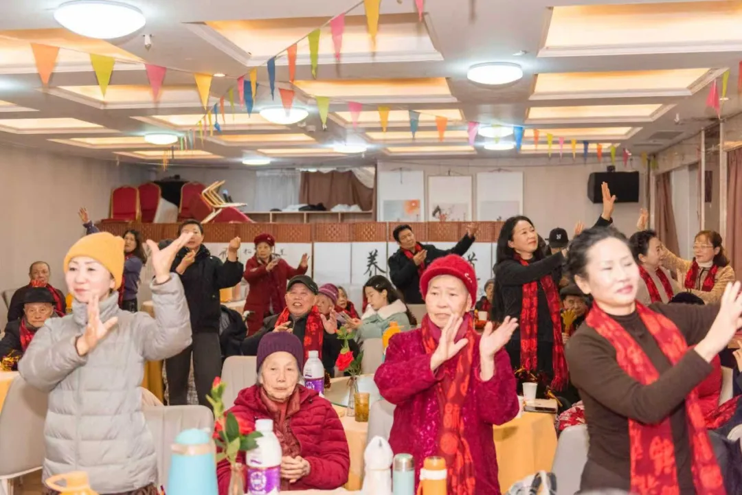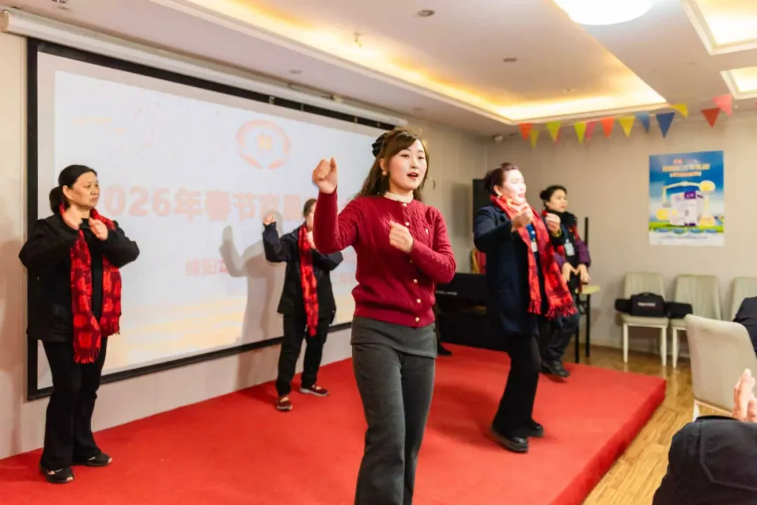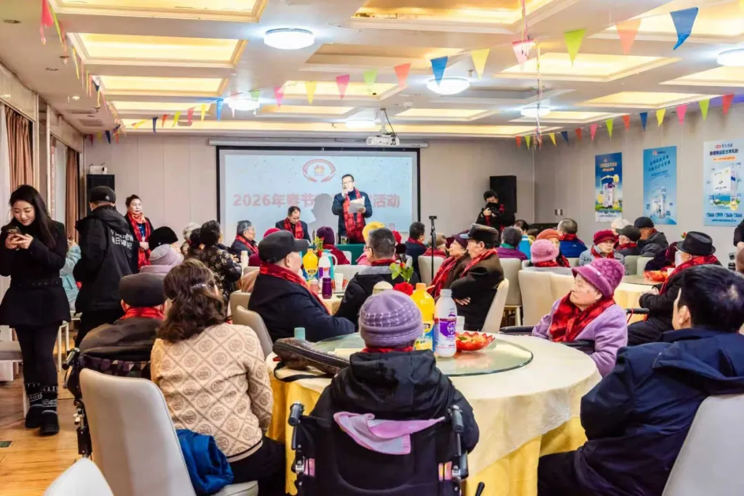 2026年2月8日上午9时30分,在激昂的《没有共产党就没有新中国》合唱声中,绵阳市涪城区城厢街道铁牛街社区的龙腾康乃馨养老服务有限公司新春团圆饭暨迎新春团拜会活动正式拉开帷幕。这已是该公司连续第八年举办这一温情活动,入住老人、家属与员工欢聚一堂,共赏自编自演的文艺节目,共享团圆佳宴,现场洋溢著欢乐祥和的节日气氛。