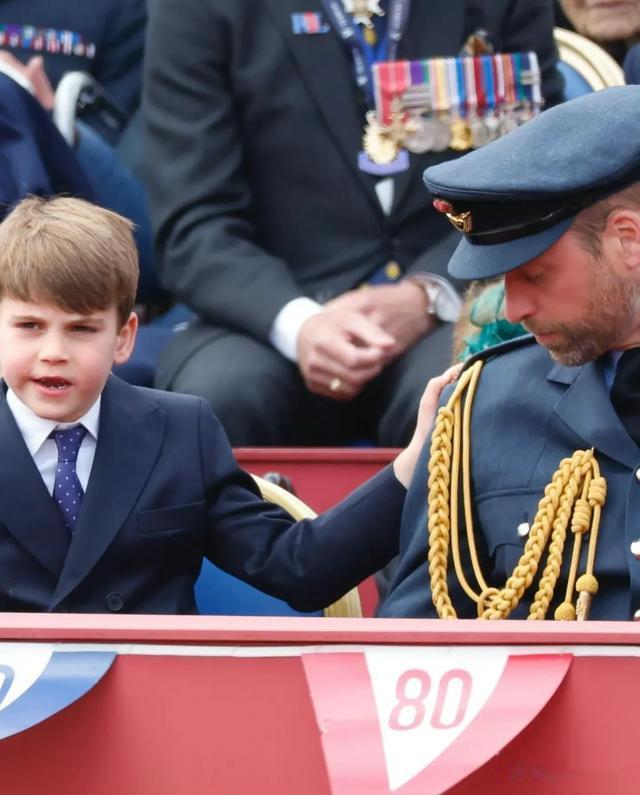 威廉王子也被小儿子的举动暖到了,看视频片段,一开始威廉王子正在和一旁的老兵交流,感受到路易的举动后,威廉王子转头看向小儿子,很明显是因此分心了~