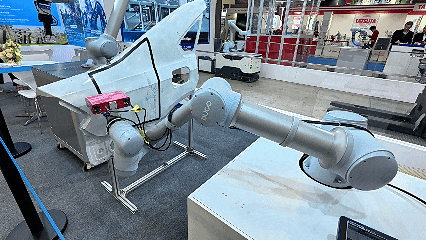 汽车车门钣金表面轨迹规划自动喷涂系统使用新松多可GCR20-1400协作机器人,机器人具备20kg负载能力与宽广工作范围,在完成复杂空间轨迹运动的同时,兼顾高精度定位与柔顺协作特性。现场展出机器人免示教的完整喷涂流程,包括三维识别、轨迹规划与运动执行,生动展示3D视觉与机器人协同作业所带来的高效、精准与柔性。该解决方案不仅适用于汽车车门等钣金件的表面喷涂,还可扩展至打磨、抛光等多种工艺场景和其他行业。目前该技术方案已实现多场景交付。