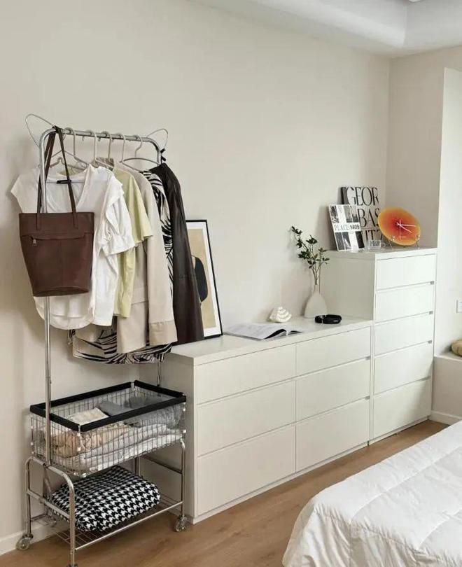 1)购买一个成品的衣帽架,不管是放床尾处,还是放床头旁边,实用性都很强。
