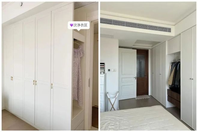 2)可以利用衣柜设计一块次净衣区,比如衣柜侧面、床尾柜正面。