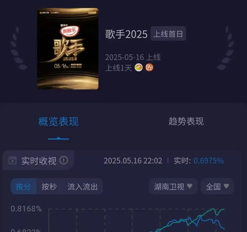 5月16日晚,备受瞩目的音乐竞技节目《歌手2025》首期在湖南卫视开启直播大幕,一众实力唱将同台竞技,为观众带来了一场视听盛宴。与此同时,浙江卫视的《奔跑吧》也在同期播出,两档热门节目在收视率上展开了一场激烈的“龙虎斗”。