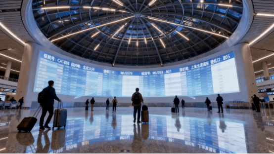 二是城市形象展示,在机场、高铁站的核心区域,通过超大画幅投影展示城市风光、历史文化、特色产业等内容,让过往旅客在等候期间就能了解城市魅力,打造城市“第一印象”;