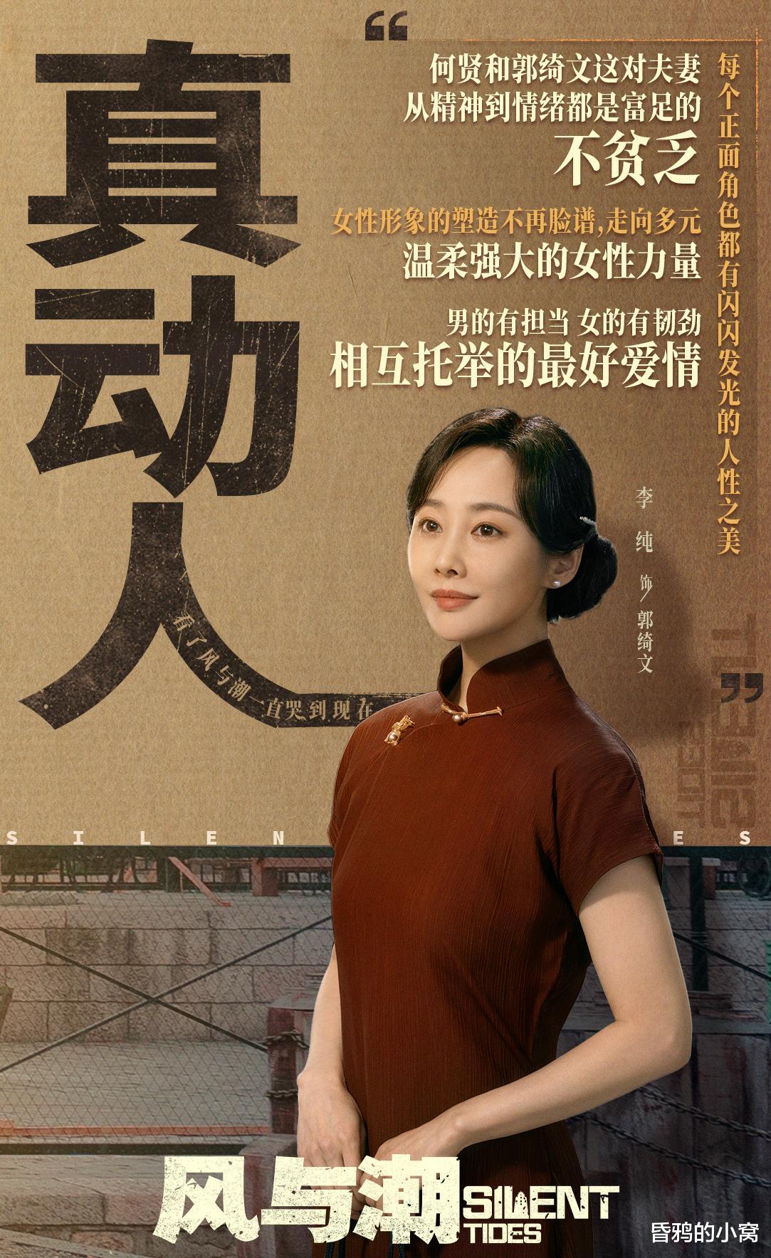 李纯坦言,初读《风与潮》剧本时曾几度落泪,这种情感共鸣成为她塑造角色的基础。郭绮文没有乔音婉那样外显的锋芒,其力量藏在细微之处,这对演技的考验远胜于大开大合的角色。
