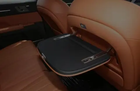 车内储物空间也很丰富,门板储物格能放下大瓶水杯和折叠伞,中控下方的储物区能放手机、钱包,前排座椅背后还有小桌板,孩子可以在上面写作业、吃东西,细节考虑得很周到。