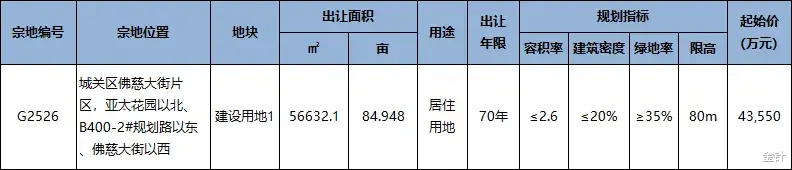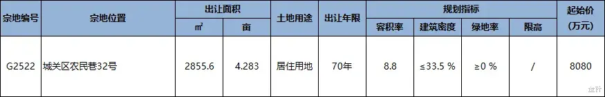 城关区农民巷棚户区改造项目4.283亩居住用地也在出让,挂牌起始价8080万元。