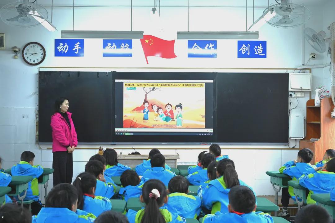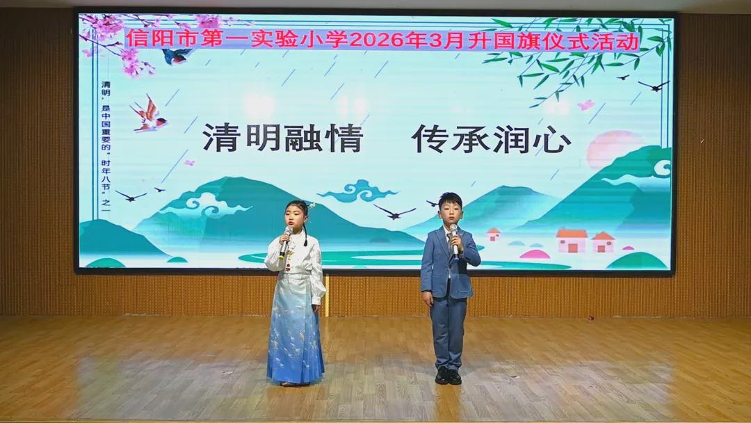 3月30日清晨,信阳市第一实验小学隆重举行了“清明融情,传承润心”国旗下主题教育活动,本次活动由一(5)中队承担,孩子们用童真视角解锁清明文化,让传统节日在校园里焕发生机。