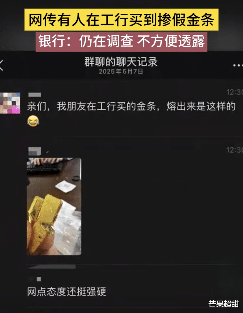 近日,一则关于"银行金条掺假"的消息在社交平台引发热议。有网友爆料称,其朋友在某银行购买的金条在熔化后内部出现黑色杂质,疑似并非纯金。随着事件发酵,涉事银行被指向工商银行上海南翔支行,而工行回应称"仍在调查中"。这一事件不仅让普通投资者对银行黄金产品的信任度产生质疑,也引发了关于黄金市场监管的讨论。
