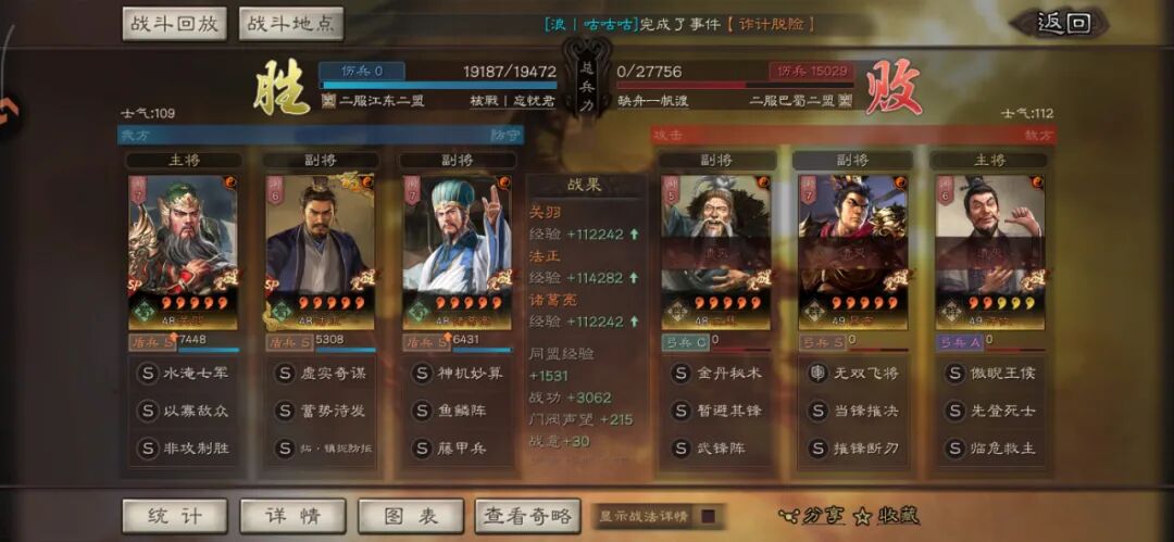 SP关羽+SP法正+诸葛亮依靠全S兵种,用诸葛亮搭配法官,用诸葛亮克制一下五谋、陆逊、张角等主动战法类,稳定多穿效果更好。