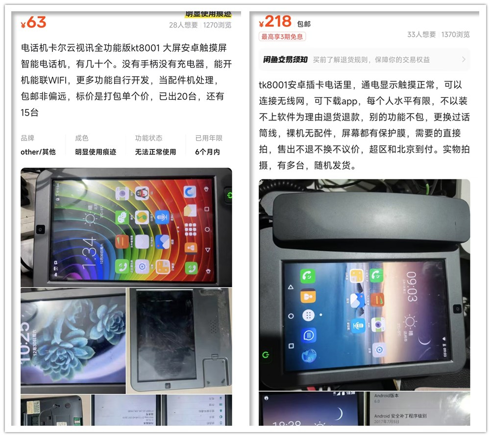 它的信息网上很少,但我还是查到了具体配置,处理器是1.3GHz四核,存储组合是2G+16G,系统是Android 6.0,你可以理解为在电话座机上面嵌入了一套安卓平板。此外这机器还有企业锁版不能装APP,但小黄鱼有代刷服务,可以刷Android 10开放式系统,个人估计不好刷。
